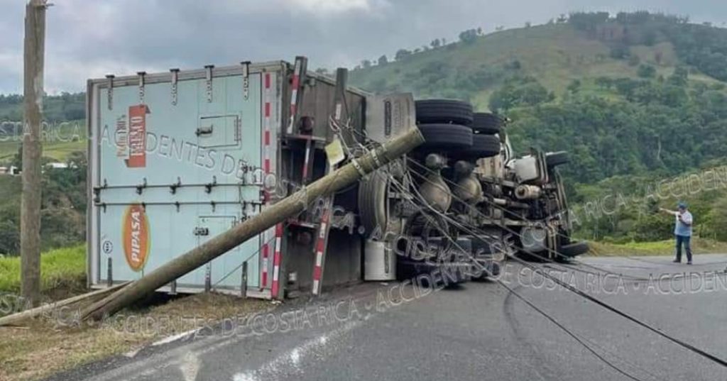 ??? ?????????????????????.???. Minutos antes de ser las 8:00 am de hoy lunes, se registro el vuelco de un camion pesado aparentemente a causa de un desperfecto , esto en la carretera que va de Ciudad Quesada hacia Zarcero.