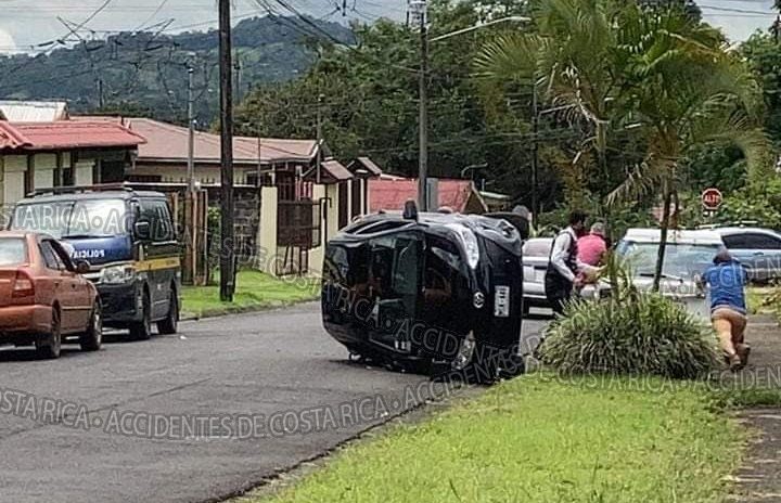 Se trato del vuelco de un automovil, sobre un costado , en la Urbanizacion Coocique , 125 al este del Bar Cleaver.